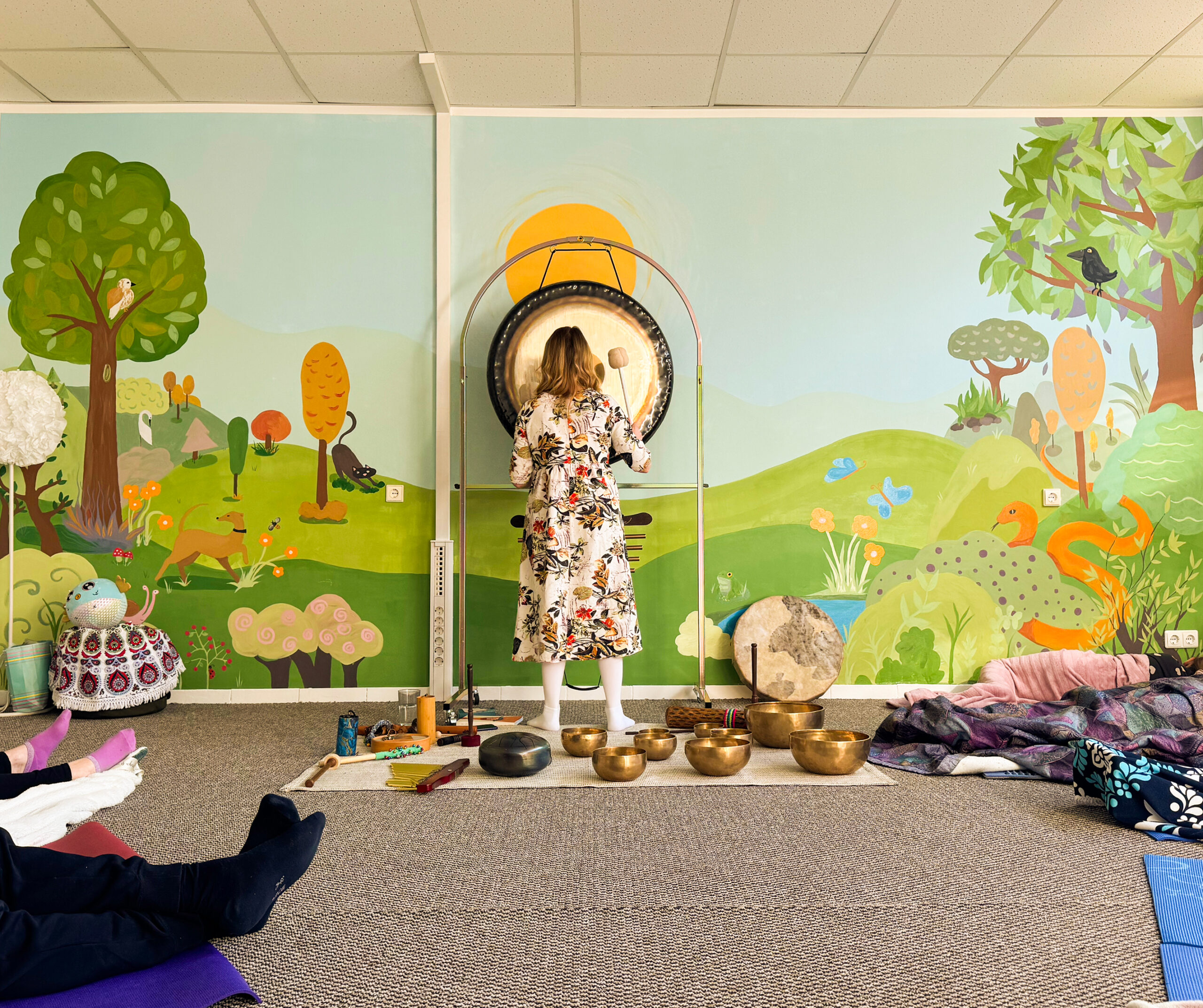 Gongai šeimoms Balandžio 12 d. Tai buvo ypatinga patirtis tiek vaikams, tiek suaugusiems. Rasita, muzikos mokytoja, vedė nuostabią garsų terapijos