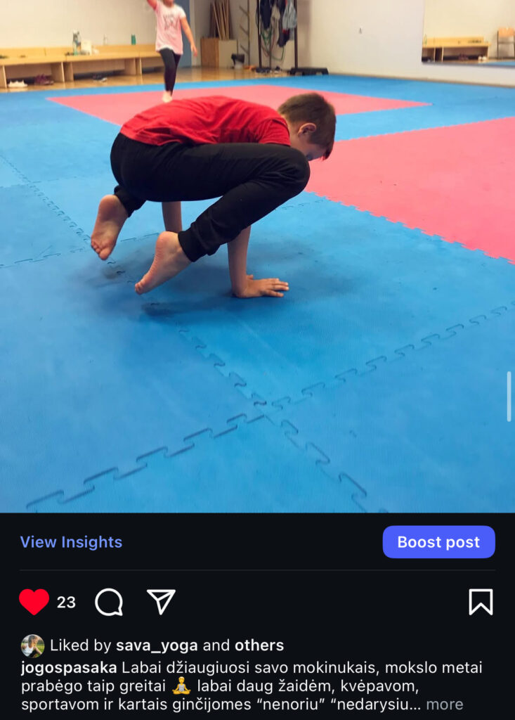 savarankiškumą ir savivertę – vaikai sprendžia, kokias pozas atlikti, ir išmoksta savireguliacijos per judesį ir kvėpavimą.