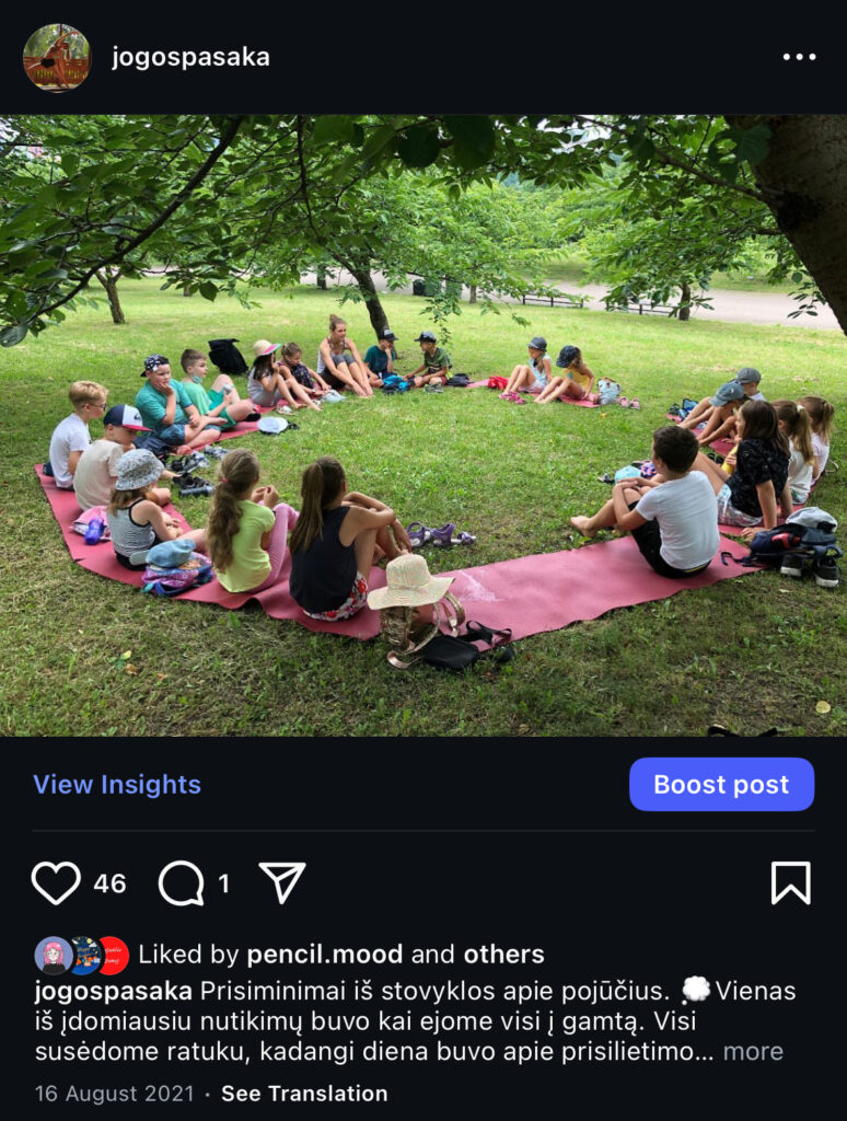 Labai džiaugiamės, kad radome šį būrelį, kuris tikrai išskirtinis rinkoje, rekomenduojame visiems pabandyti, gera treniruotė vaikams kartu ir fiziškai ir emociškai, nes užduotys labai įvairios. Ir žinoma ačiū nuostabiai mokytojai Indrei už visa tai 🙂
